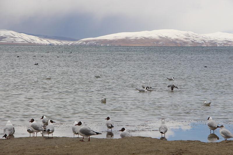 Black-headed gulls rest at Lake Manasarova on May 10, 2018. [Ma Chi]