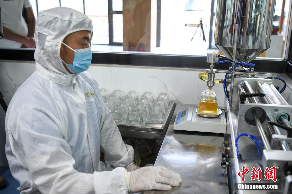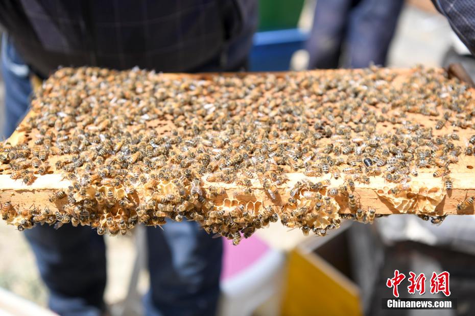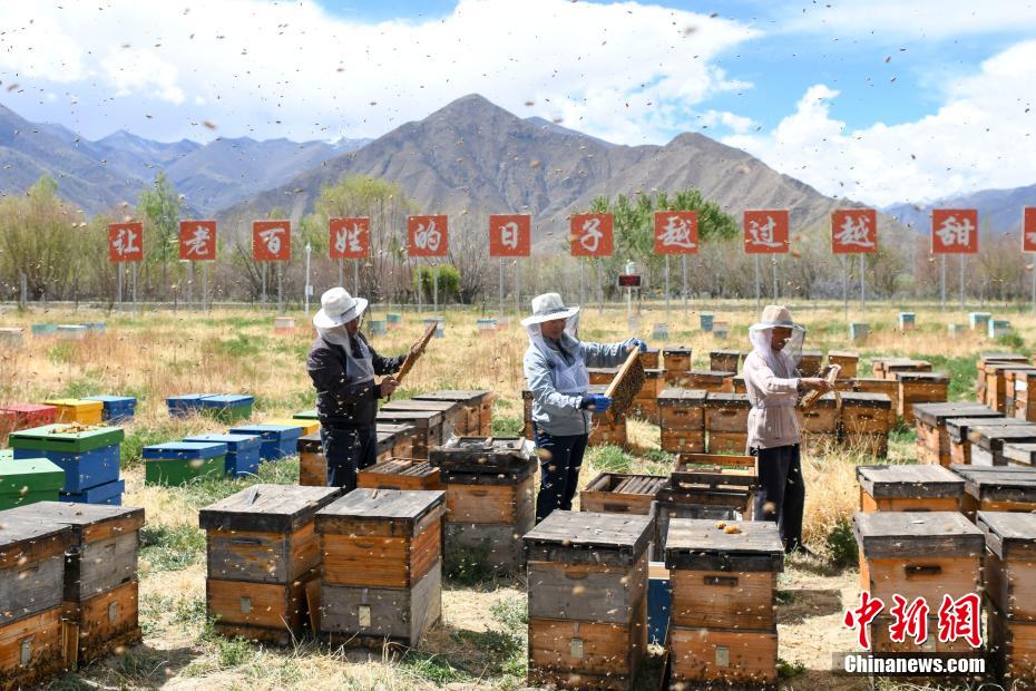On May 28, in a beekeeping base in Konggar County, Lhoka City, Tibet Autonomous Region at an altitude of 3,650 meters, a staff member is collecting honey. It is reported that the beekeeping project is a brand-new project incubated and promoted by the ninth batch of aid-Tibet team of Changsha, Hunan Province. The project started in May 2020. At present, the No. 1 Honeycomb Complex, Transparent Factory, Sunshine Restaurant and eight bee-breeding demonstration bases have been completed, creating jobs for 358 local people, and the first-year sales after production reached 8 million yuan.