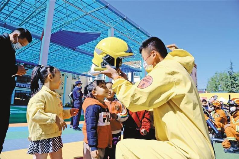 Recently, staff of the Lhasa Fire Rescue Detachment went into the experimental kindergarten of the Tibet autonomous region and carried out fire fighting publicity activities on campus, aiming on the goal of "educate a child, affect a family and even the entire society".