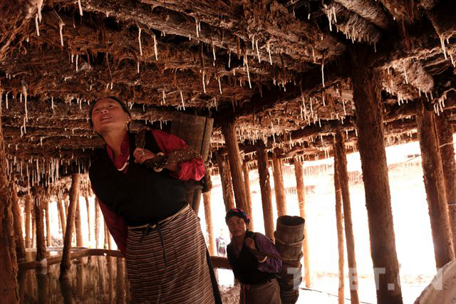 Ancient salt field is called as the “work of sunshine and wind”. Alongside the almost 2000-kilometer river range of Lantsang, only Mangkam ancient salt field have salt in deep field. People fetch brine in wooden barrel from brine water well and pour it into the brine pool for dying.