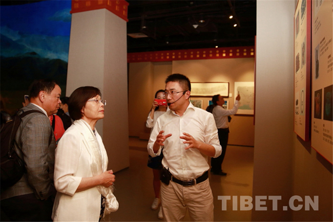 Ms. Zhang Ziwen, widow of Mr. Xing Suzhi, a famous Han monk who pursuits Buddhist study in Tibet, visits the Tibetan Culture Museum at the China Tibetology Research Center.