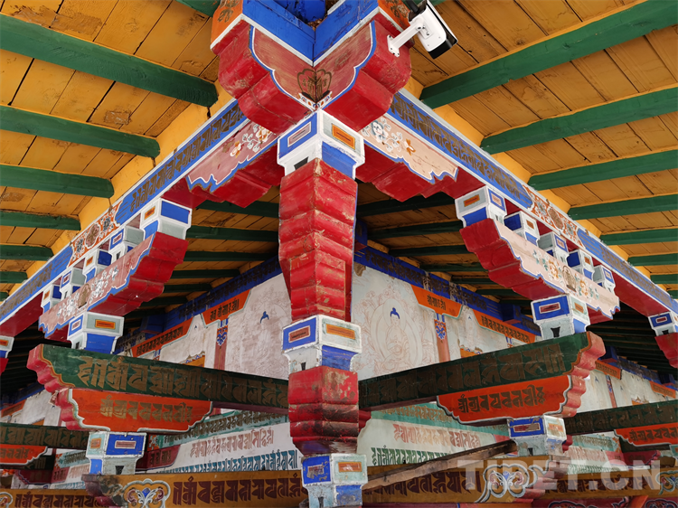 The Samye Monastery is located in Samye Town, Chanang County, Lhoka City. It is the first monastery in Tibet. The architecture in the monastery is arranged according to the Buddhist cosmology. The main hall of the monastery, the Wuzi Hall, however, absorbed and integrated multi-ethnic architectural culture, in which the Tibetan-style pillar-net structure is combined with the Han-style bucket arch. The bucket arch is used between the pillar and the beam, which is an example of the combination of Tibetan and Chinese architectural cultures.