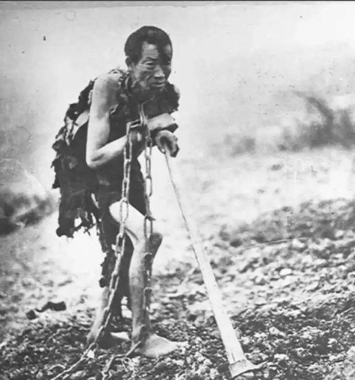 A serf in iron shackles. Source: Museum of Tibetan Culture