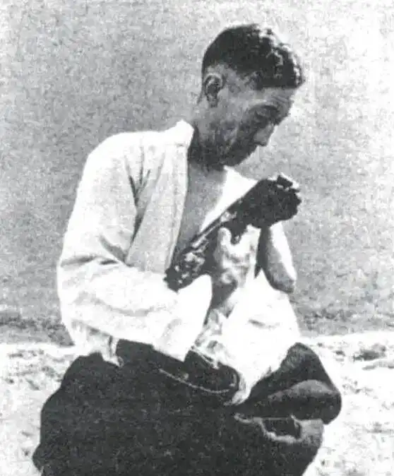 A serf holding an arm shattered by a serf owner’s gunshot.