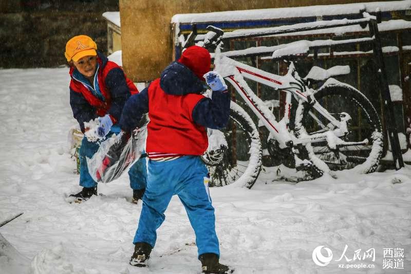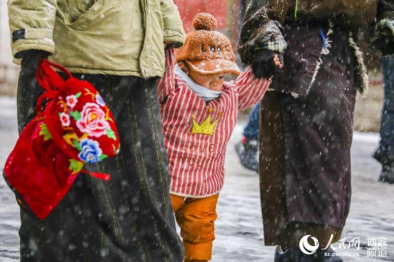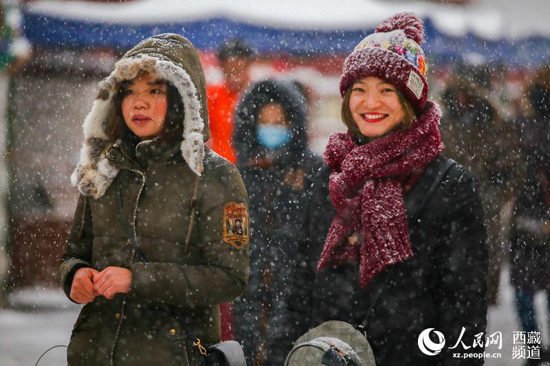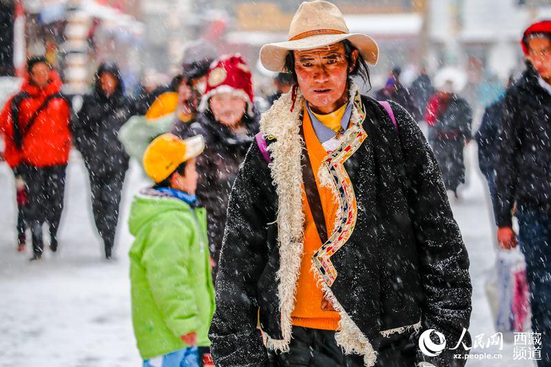 Barkor street, which is located at the old town of Lhasa City, southwest China's Tibet, is a famous circumanbulation around the Jokhang Temple and a shopping center of the city. It has comparatively well-preserved traditional features and living style of ancient Lhasa city. Known as the "holy road" among Tibetans, the street looks more solemn in snow.