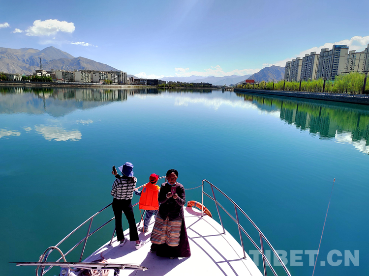 Recently, the Lhasa Sightseeing Cruise Water Project has been officially opened. Citizens and tourists are going to the Binhe Sports Park on the east side of the No. 3 Dam Bridge on the Lhasa River to check in and have an experience of the project.