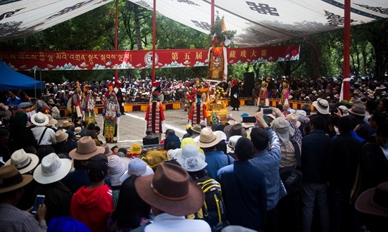 Tibetan opera performances began on August 12, the second day of the traditional Shoton Festival in Lhasa.