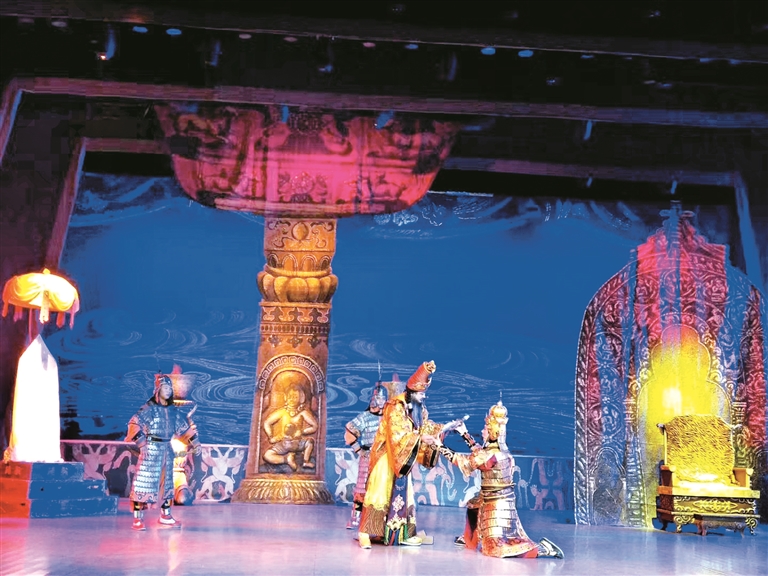 On the evening of October 24, the large-scale historical Tibetan opera Songtsen Gampo, which was created by the Qinghai Provincial Tibetan Opera Troupe and the Qinghai Province Huangnan Tibetan Autonomous Prefecture Ethnic Song and Dance Troupe of northwest China's Qinghai Province, performed in Lhasa, capital city of southwest China's Tibet, and was well received by the audience.
