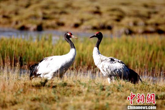 Black-necked crane is a species which could indicate ecological changes on plateau. The black-necked cranes primarily inhabit in the plateau meadows, reed swamp, and marshland at an altitude from 2,500 to 5,000 meters, and they're the only crane species which live and cultivate on the Qinghai-Tibet Plateau. In 1989, the black-necked cranes were listed as China's first class protected wildlife species, and also added to the CITES index in 1997.
