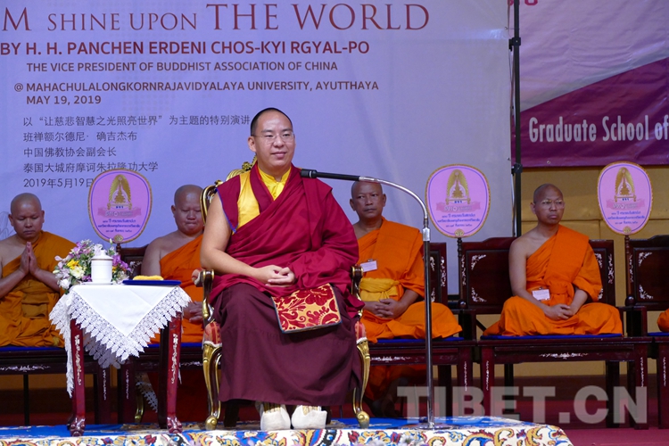 This was Panchen Erdeni Choskyi Gyalpo's first visit with the delegation. On the morning of May 19, he was invited to give a speech entitled Let the Light of Compassion and Wisdom light up the World at Mahachulalongkornrajavidyalaya University in Thailand.