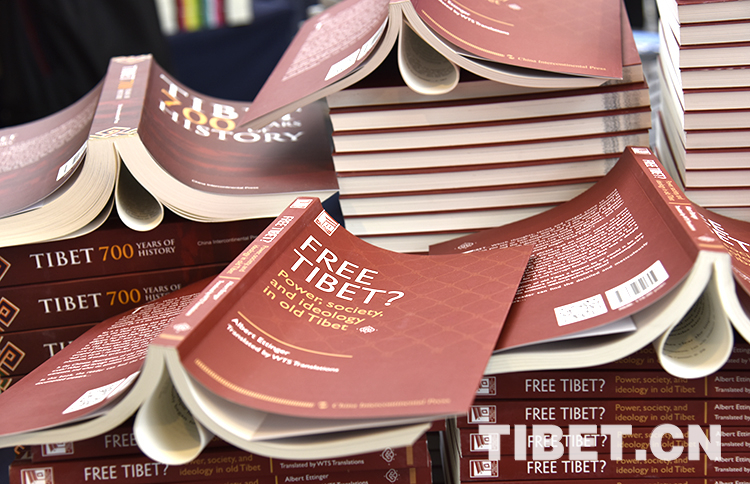 Photo shows Albert Ettinger's book Free Tibet? Power, Society, and Ideology in Old Tibet at the 2019 China Tibet Development Forum.