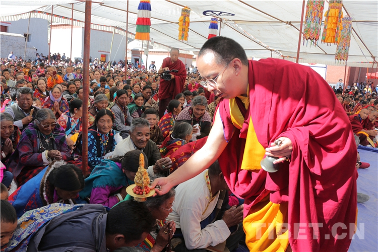 The 11th Panchen Lama gives longevity empowerment to Buddhist followers.