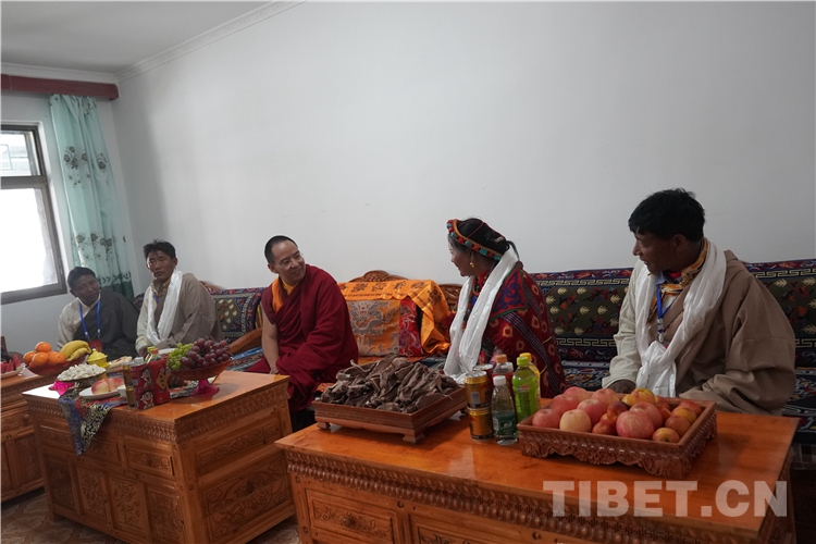 After visiting the site, the 11th Panchen Lama also went to Zarang Village at the foot of the ruins to visit farmer Jingdrol Dekyi's family. The 11th Panchen Lama talked closely with the family about their medical, education, housing, and income conditions.