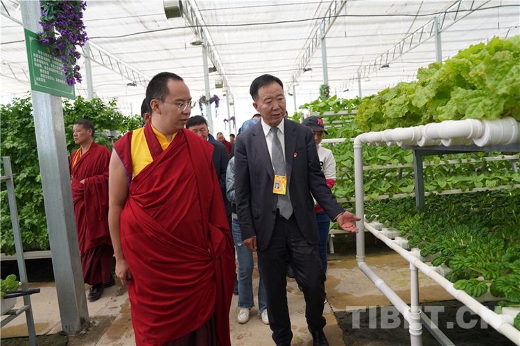 Photo shows the 11th Panchen Lama Choskyi Gyalpo conducts investigation in Ecological Agricultural Industry Park of Gar County in Ngari, southwest China's Tibet Autonomous Region on August 1, 2019.