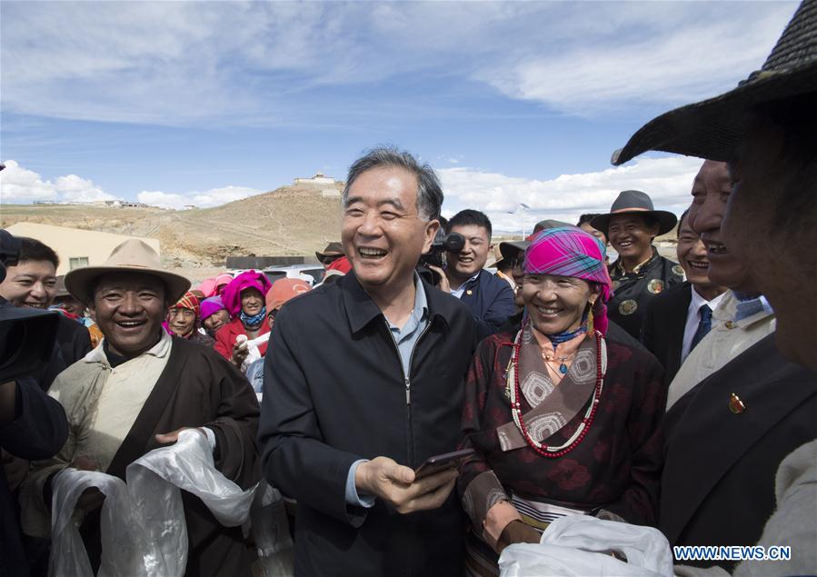 Wang Yang, a member of the Standing Committee of the Political Bureau of the Communist Party of China Central Committee and chairman of the National Committee of the Chinese People's Political Consultative Conference, visits a village in Burang County of Ngari Prefecture, southwest China's Tibet Autonomous Region, Aug. 20, 2019. Wang made a research trip from Monday to Wednesday in Tibet. [Photo/Xinhua]