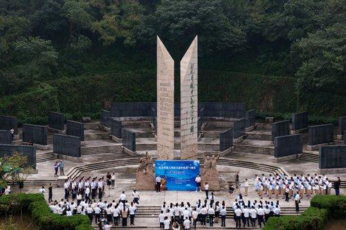More than 200 local residents from different communities of Nanjing, capital of East China's Jiangsu Province, gathered at a World War II martyr memorial monument to commemorate the martyr's sacrifices on Monday, which marks the 73rd anniversary of the victory in the Chinese People's War of Resistance Against Japanese Aggression (1931-45). Photo: VCG