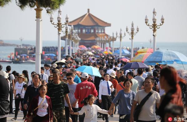 Photo taken on October 3, 2018 show tourism booming in Qingdao during the National Day holiday. [Photo: IC]