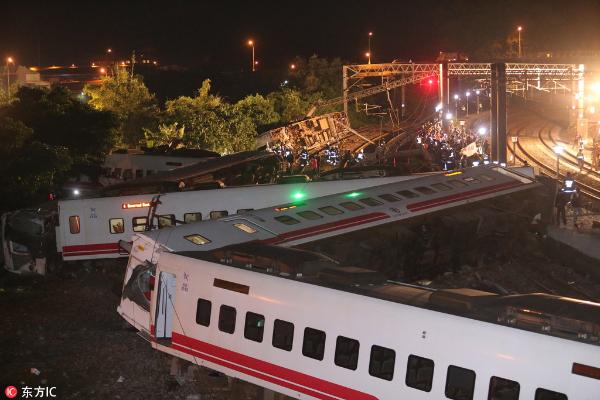 The accident, the worst of Taiwan railways in more than three decades, happened on a popular line along the island's east coast. Train services were partially resumed Monday morning.