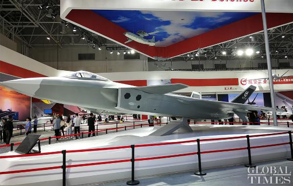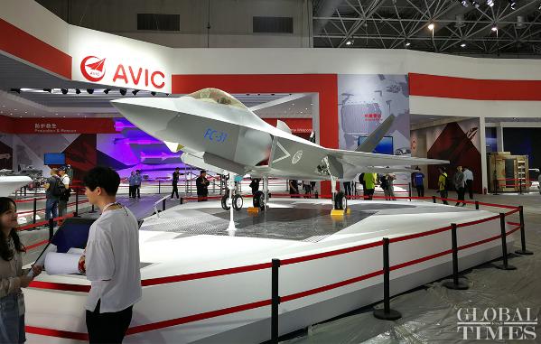 A model of an FC-31 fighter jet is displayed. Photo: Yang Sheng/GT