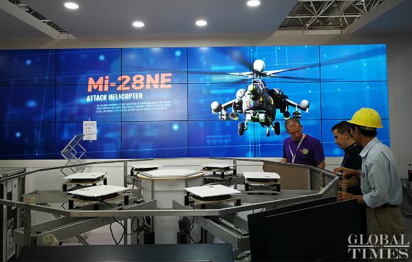 Employees of Roscosmos, Russia’s state corporation for space flight and cosmonautics, assemble their booth before the opening of Air Show China 2018 on Sunday. Photo: Yang Hui/GT