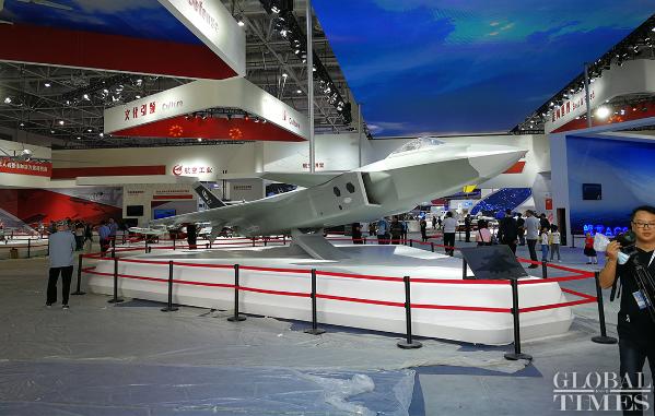A model of a Chinese stealth fighter jet J-20 is displayed inside a venue at Air Show China 2018. Photo: Yang Sheng/GT