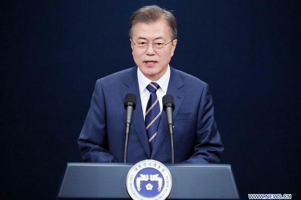 South Korean President Moon Jae-in delivers a nationally televised speech at the Blue House in Seoul May 27, 2018. Moon said on Sunday that top leader of the Democratic People's Republic of Korea (DPRK) Kim Jong Un and U.S. President Donald Trump both wished the success of their summit "wholeheartedly." Moon met with Kim on Saturday at the border village of Panmunjom and with Trump in Washington earlier this week. [Photo: Xinhua/Newsis]