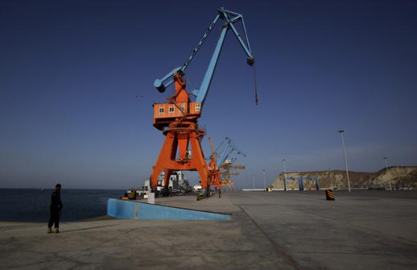 Pakistan Navy soldiers patrol in Gwadar port, about 700 kilometers (435 miles) west of Karachi, Pakistan, Monday, April 11, 2016. Gwadar Port is a deep-sea port developed jointly by the Pakistan and China at a cost of USD $248 million. Gwadar is the key to the trade portion of the China Pakistan Economic Corridor. [Photo: AP/Anjum Naveed]