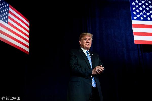 US President Donald Trump arrives to speak during the Salute to Service dinner at the the Greenbrier resort July 3, 2018 in White Sulphur Springs, West Virginia. [Photo: VCG]