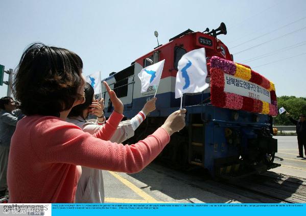 A train passes the gate for the Demilitarized Zone near Dorasan on the way to North Korea on May 17, 2007 in Paju, South Korea. [Photo: VCG]