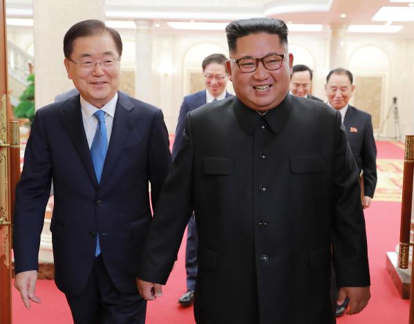 President Roh Jae-in's special delegation of the National Security Agency (GNP), headed by Kim Jong-in, met with North Korean leader Kim Jong-un at the headquarters of Pyongyang Labor Party on September 5 2018. [File photo:IC]
