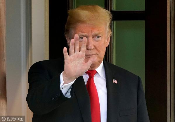 U.S. President Donald Trump waves to Chilean President Sebastian Pinera in as he departs after a meeting at the White House in Washington, U.S., September 28, 2018. [Photo: VCG]