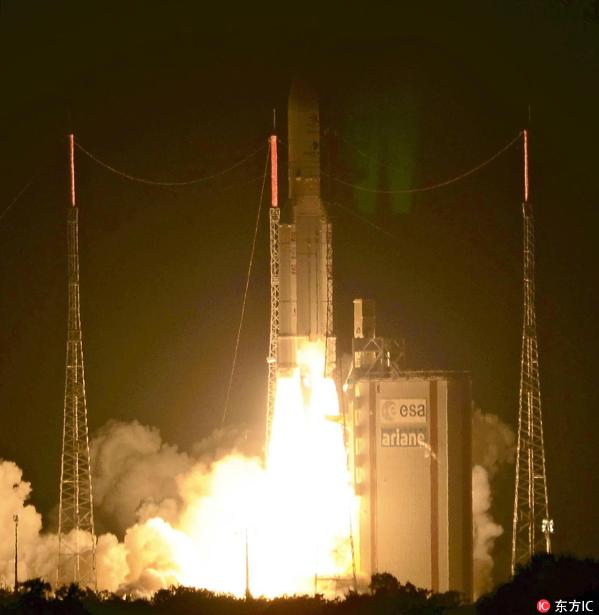 Ariane 5 rocket launches at Guiana Space Center, Kourou, French Guiana on Oct.19, 2018. [Photo: IC]