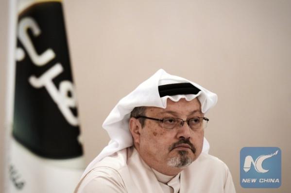 In this file photo taken on December 15, 2014 (FILES) In this file photo taken on December 15, 2014, general manager of Alarab TV, Jamal Khashoggi, looks on during a press conference in the Bahraini capital Manama. [Photo: Xinhua]