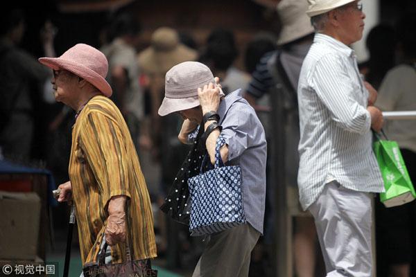 Senior citizens walk through a shopping district in Tokyo, Japan, on Thursday, August 16, 2012. [Photo: VCG]