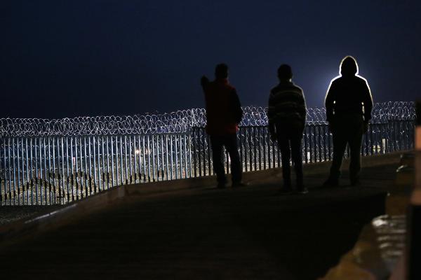Residents stand on a hill before barriers, wrapped in concertina wire, separating Mexico and the United States, where the border meets the Pacific Ocean, in Tijuana, Mexico, Saturday, Nov. 17, 2018. [Photo: AP/Marco Ugarte]