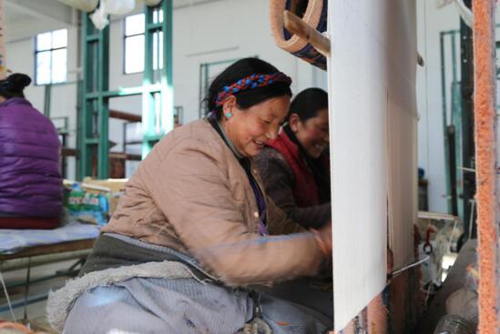 "The Gyantse County government invested 6.5 million yuan (about 0.95 million US dollars) in our factory, creating a new workroom with steel frames, with over 15 thousand square meters," said Lhaphun, the director of the Gyantse Carpet Factory. "We have 60 factory workers, everyone earns up to 3,200 yuan (about 466 US dollars) a month. Our factory uses a performance-based incentive and bonus system, with monthly income up to 4,700 yuan (about 684 US dollars). This is great for employee morale and also increases our production efficiency."