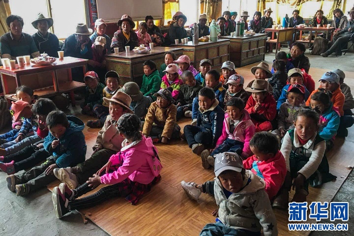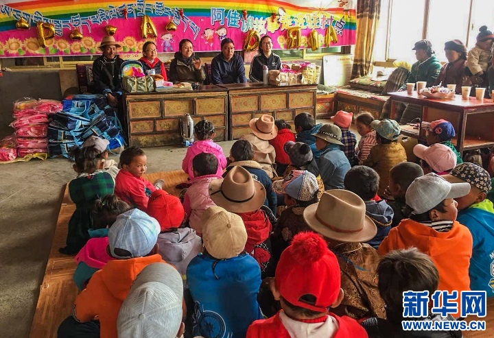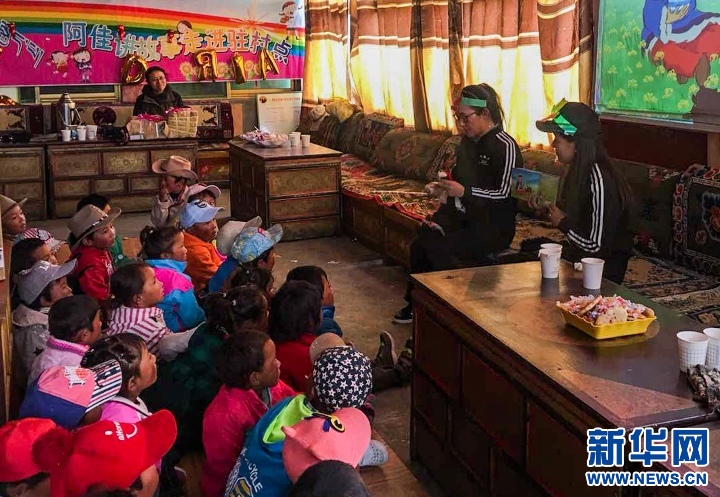 There are 43 preschoolers aging four to six in Chawo Village, which lies 4,550 meters above sea level. The village has poor economic and transportation conditions and still has no kindergarten. Information here is mainly from television, and children usually have little exposure to extracurricular reading. Because of this, ajas (‘elder sister’ in Tibetan) from the Tibet Library bring stories to the children as well as donations of books and schools supplies.