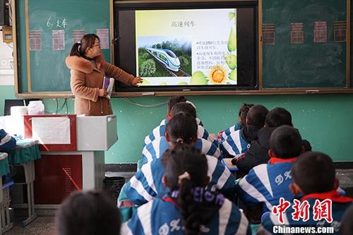 On a morning in late March, the teacher in the English class at the Dagze District Center Primary School in Lhasa, Tibet, is using the latest teaching equipments to play instructional videos for the class.