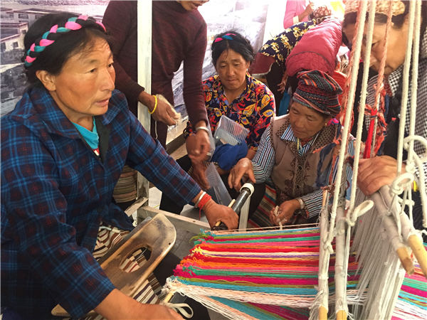Women learn Tibetan carpet weaving at a vocational training course offered by a project of Yunnan Agricultural University, funded by the United Nations China Gender Fund for Research and Advocacy. [Photo/China Daily]