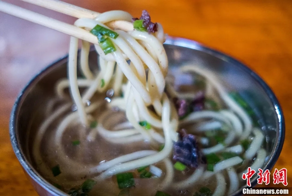 The Tibetan noodles are mostly made of highland barley, which is unique to Tibet and other Tibetan-inhabited areas, with some made of wheat. The noodles are often made, cooked well, and dried in advance. When you want to have it, you just need to cook some yak broth and boil the noodles in the broth. The noodles would taste half-cooked, which is a unique feature of Tibetan noodles.
