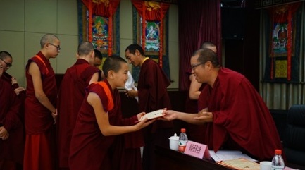 Monks from Mongolia receive their certificates of graduation.
