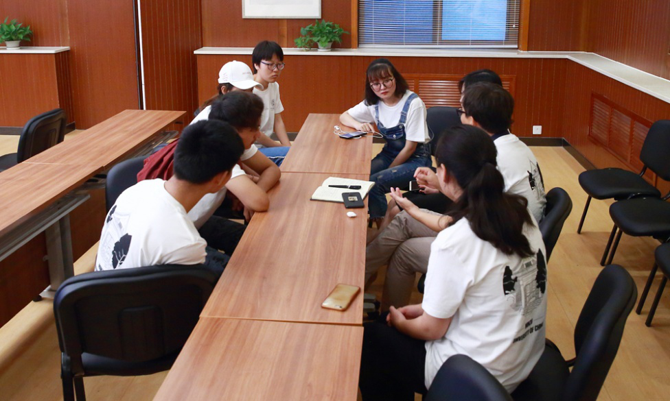 After the meeting, team leaders lead teachers and students in discussions. Photo: Yang Yueyun.