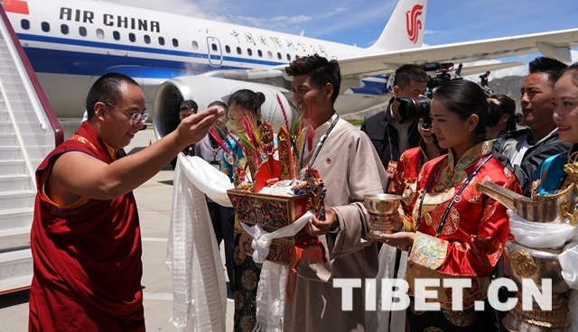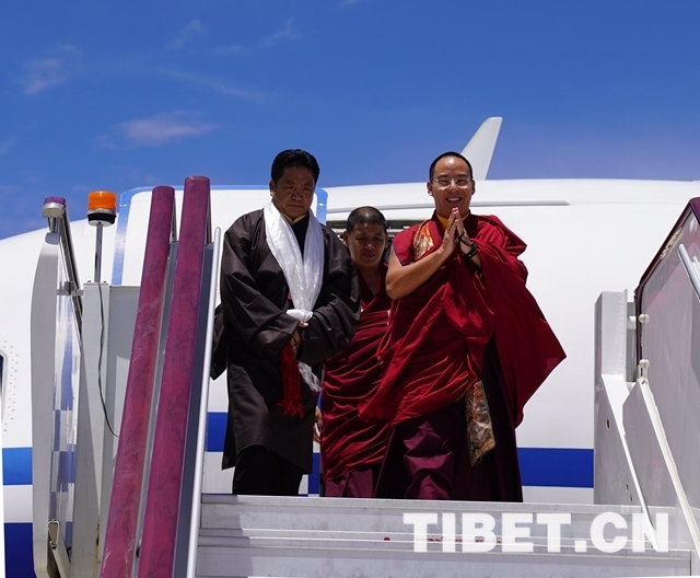 The 11th Panchen Lama arrives at Lhasa Gonggar Airport.