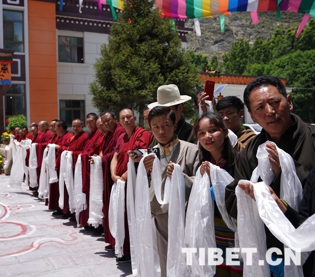 In July, the 11th Panchen Lama Erdeni Choskyi Gyalpo began to carry out research and Buddhist activities in Tibet. Responding to requests of his followers, the Panchen Lama offered blessings and gave Buddhist teachings in several locations in Tibet. Men and women, in order to welcome the Panchen Lama, dressed in traditional Tibetan clothing and carried che-mar boxes and white khata, which symbolize good luck, offering good wishes to the Panchen Lama. Inside the Sheling Dorje Palace in Lhasa, Tibetan monks welcomed the arrival of the Panchen Lama with the highest forms of etiquette according to Tibetan customs.