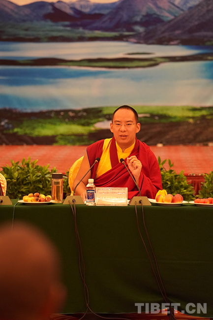“As a representative of religious communities, when we give teachings, we should strive to be in touch with the common people, pay attention to methods, and strive to make ourselves easily understood,” Erdeni Choskyi Gyalpo, a member of the Standing Committee of the Chinese People’s Political Consultative Conference and vice-president of the Chinese Buddhist Association, emphasized during a discussion with religious leaders of Lhoka Prefecture, Tibet on August 18. The Panchen Lama has been in Lhoka to conduct surveys and hold Buddhist activities.