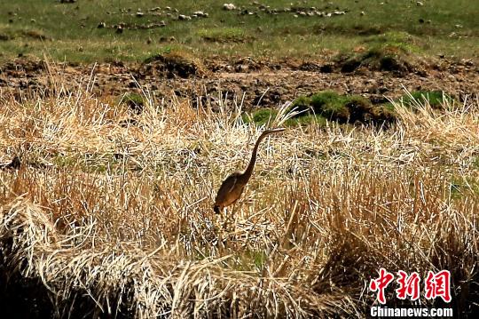 According to the Bureau of Management at the Qinghai Lake National Nature Reserve, observers recently found a type of heron in a small wetland in the area.