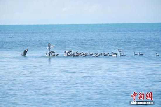 On August 18, black-headed gulls, which inhabit in Qinghai Lake, play on the north shore of the Lake in the Fairy Bay Wetland in Gangcha County, Haibei Tibetan Autonomous Prefecture, Qinghai Province.[Photo/China News Service]