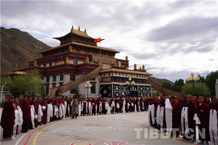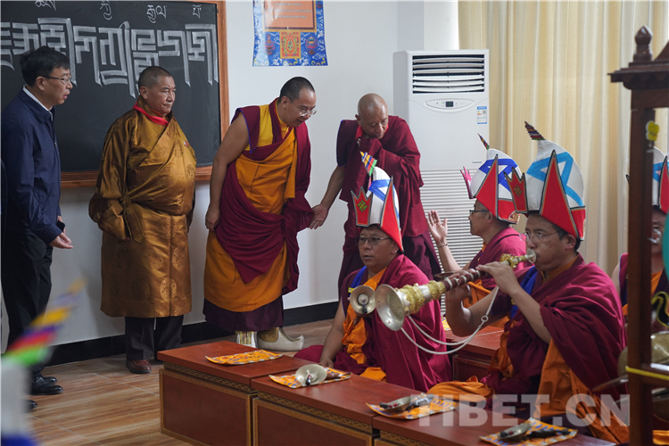 On the day, the Panchen Erdeni Choskyi Gyalpo, who is also a member of the Standing Committee of the National Committee of the Chinese People's Political Consultative Conference and a vice president of the Buddhist Associatio of China, paid a vist to the Buddhist Academy of Tibet. All of the monk and nun students of the academy waited with khata scarves in their hands for the arrival of the Panchen Lama.