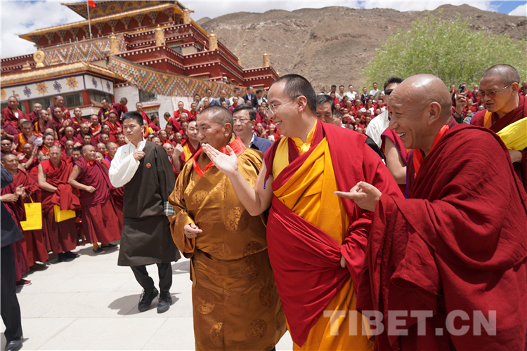 The 11th Panchen Lama also visited the scriptures debating area to observe the debates of students in the academy. When he witnessed a fierce debate, he immediately went to sit down near the responder in order to hear the content of the debate more clearly and he also commented on it with the monks around him from time to time.
