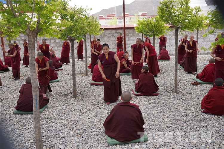 Students of the Buddhist Academy of Tibet debate scriptures.